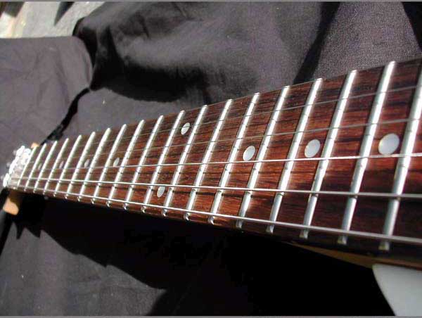 From here you can see down the neck, rosewood I believe, made from roses somehow |